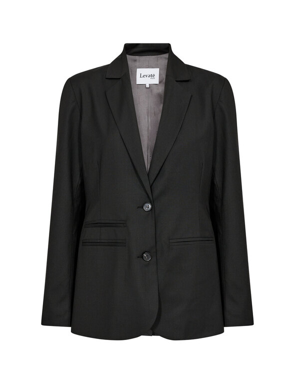 Kristine on Leveten tyylikäs, vuoritettu jakku. Olkatoppaukset, vuori, taskut ja napitus edessä. Yhteensopiva Kristine-housujen kanssa, yhdistämällä syntyy ajaton housupuku.