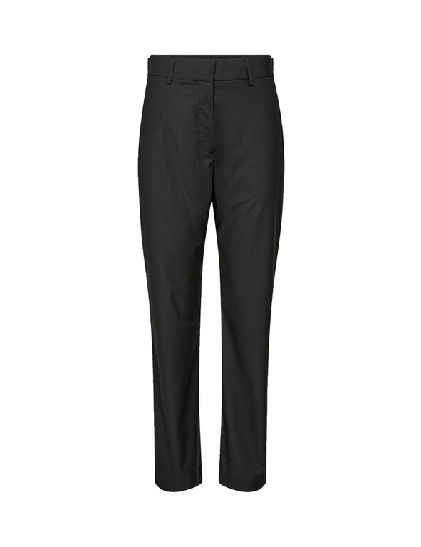 Leveten Kristine-housut ovat kapealinjaiset ja korkeavyötäröiset. Housuissa on taskut ja vetoketjukiinnitys. Yhteensopiva Kristine-jakun kanssa, yhdistettynä saat klassisen jakkupukun.