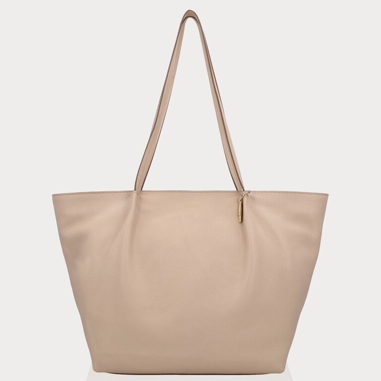 Tilava ja pehmeästi laskeutuva shopper-laukku, joka on valmistettu nahasta. Kultaiset yksityiskohdat ja ajaton muotoilu tekevät laukusta sekä käytännöllisen että elegantin. Täydellinen työvälineille, koulukirjoille tai shoppailupäivään.