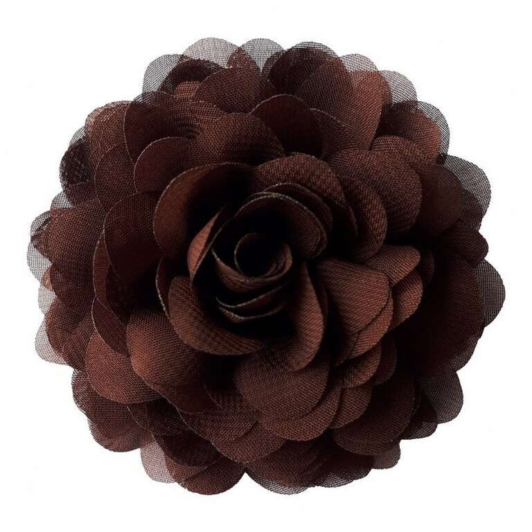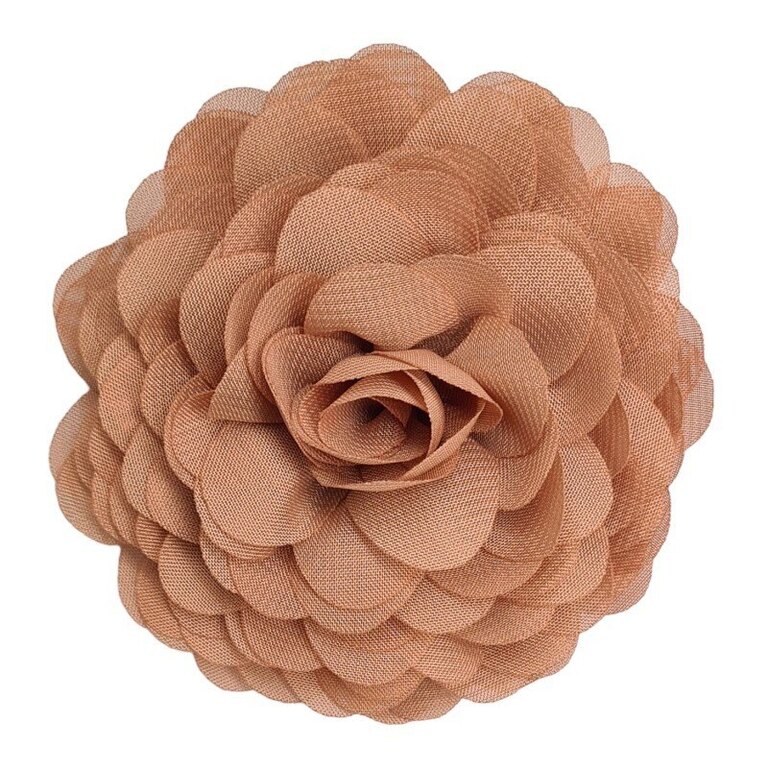 Kukat ovat tasapohjaisia, joten ne asettuvat hyvin vaatteisiisi tai hiuksiisi. Takana on kauniisti viimeistelty villakangaspohja samassa värissä ja tukeva alligaattoriklipsi. Kukkasen halkaisija on noin 9 cm. Takana oleva logotarra on silkkiä ja voit jättää sen paikoilleen.