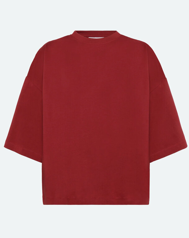 Lyhyet hihat, pyöreä pääntie, suora malli. Yksinkertainen printtiteksti tuo hillityn ja siistin yksityiskohdan muuten pelkistettyyn designiin.