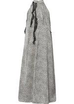 Mekossa on v-pääntie, jonka voi kääntää myös selkäpuolelle, ts. tätä mekkoa voi käyttää kumminkin päin. Hiha 3/4-pituinen ja kyynärpään kohdalta pussitettu. Mekossa on myös taskut ja mukana tulee vyö.