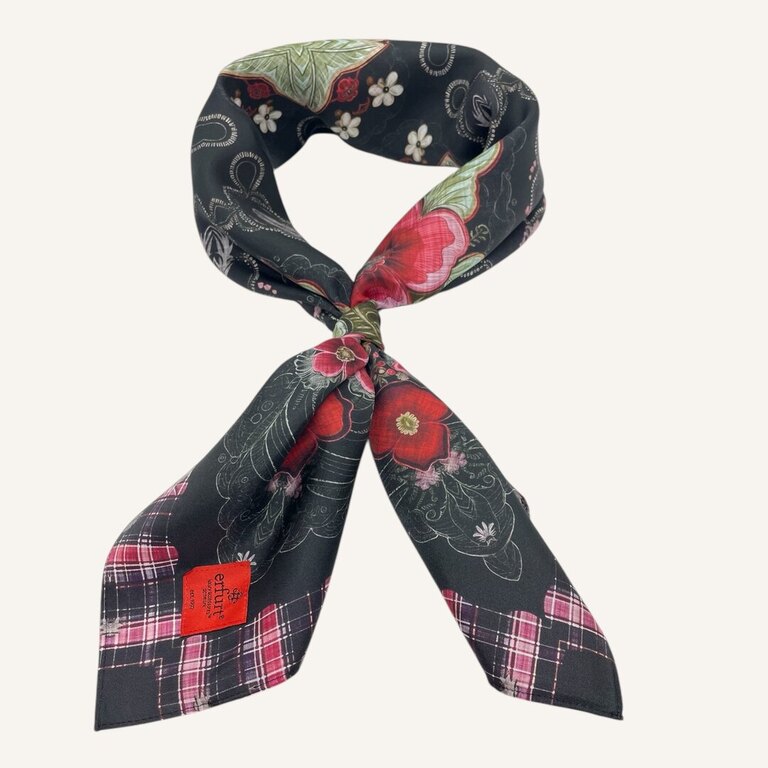 Erfurtin kaunis silkkihuivi, materiaali 100% mulperisilkki. Koko 80x80 cm.