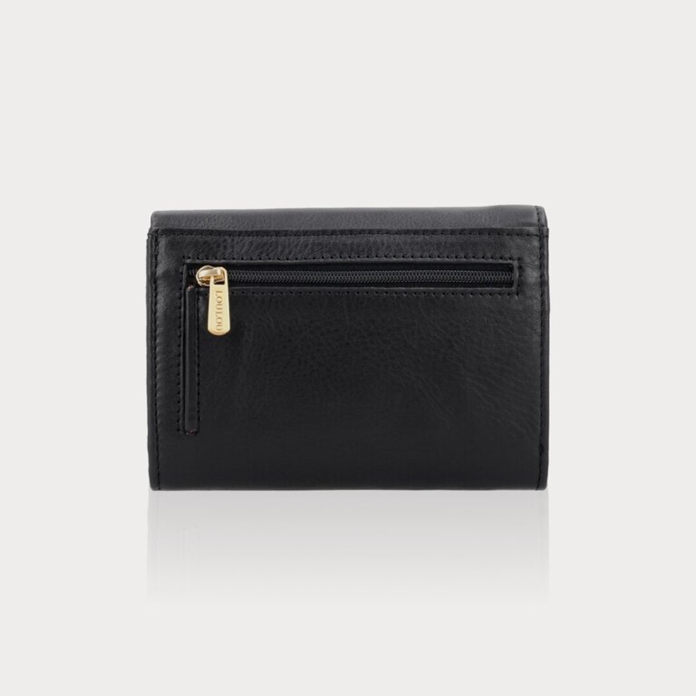 PETITE FLEUR Black Gold on elegantti ja kompakti lompakko mustasta klassisesta nahasta. Pienestä koostaan huolimatta se on äärettömän toimiva: useita korttitaskuja, kolikkotasku, setelitasku sekä lisätaskuja. Tyylikäs valinta jokapäiväiseen käyttöön.