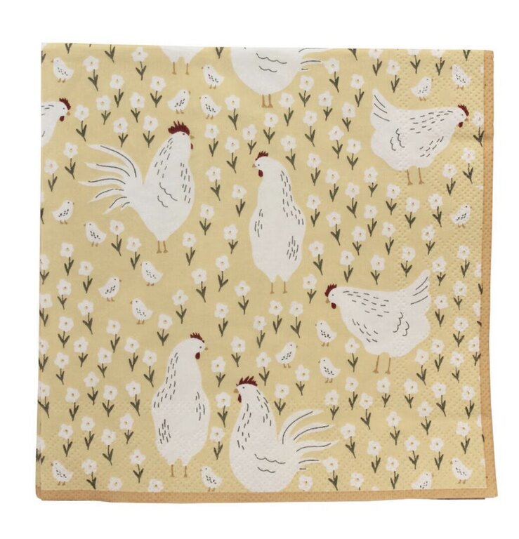 Korkealaatuiset paperiservetit viehättävällä kana-kuosilla, valmistettu FSC-sertifioidusta paperista. Jokainen servetti on kooltaan 33 x 33 cm ja painettu yhdeltä puolelta elintarviketurvallisilla, vesipohjaisilla väreillä. Pakkauksessa 20 servettiä. Täydelliset juhliin tai arjen kattauksiiin.