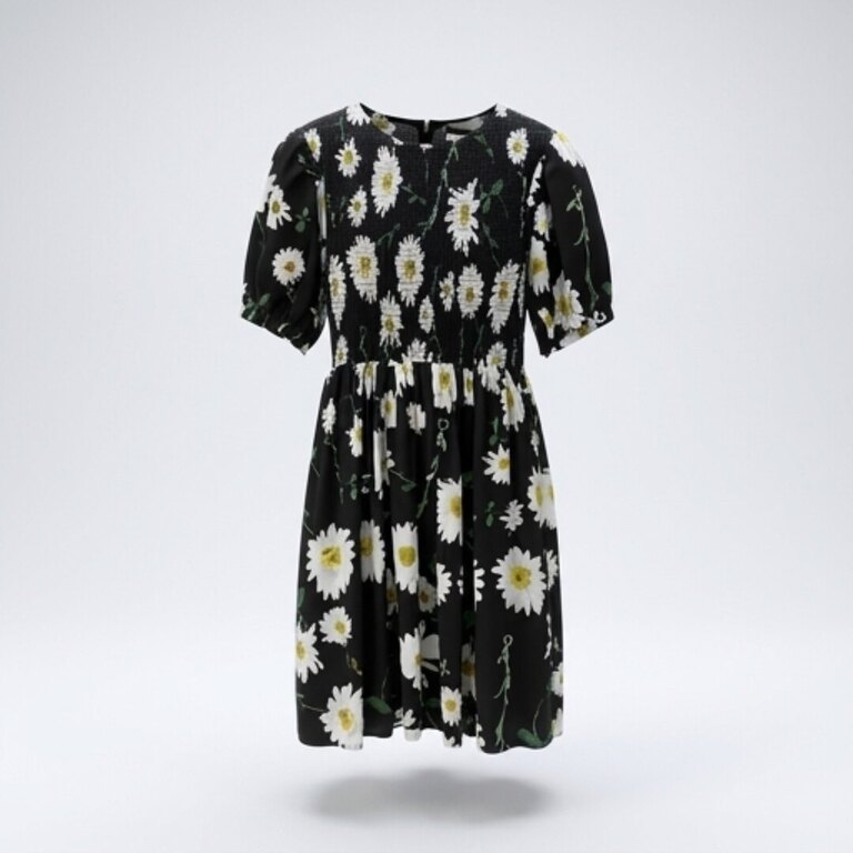 Ihana, Ivana Helsingin puhvihihainen mekko, yläosa joustavaa smokkirypytystä. Materiaali 100% puuvilla.