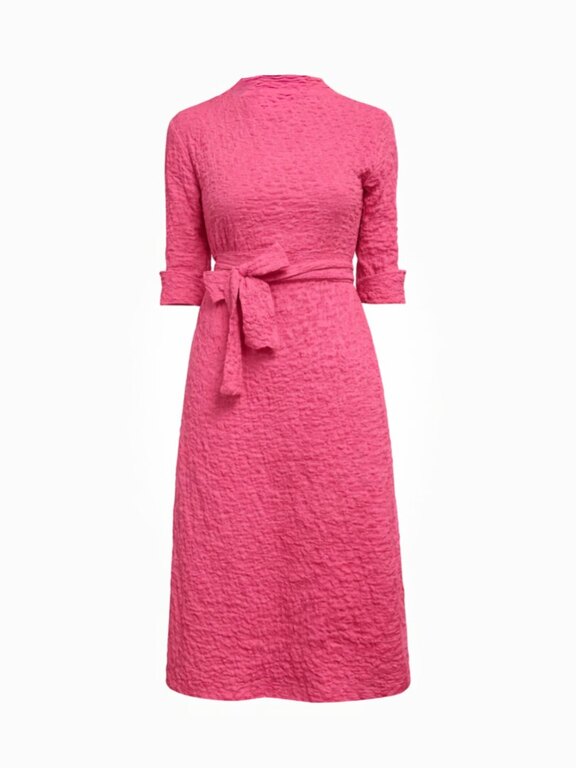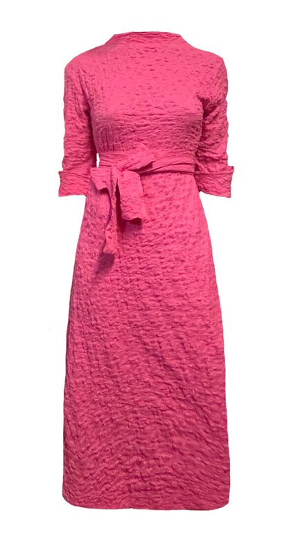 Materiaali struktuuri-pintanen, hengittävä ja joustava Ulma-kangas. Puuvilla 75%-polyamidi 15%-10 % spandex. Valmistettu Suomessa, Lahdessa. Pese mekko matalassa lämpötilassa, max. 30 astetta, kuosittele kosteana ja laita henkariin kuivumaan. Ei rumpukuivausta. Ei vaadi silitystä.