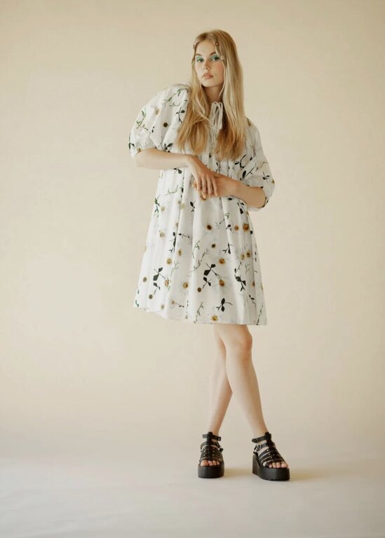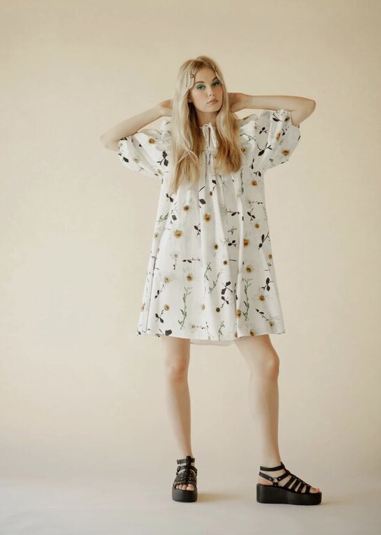 Täydellinen mekko, kun haluat näyttää hyvältä ja maksimoida mukavuuden. Loose-fit, nauhat pääntien halkiolla edessä. Etu- ja takapääntien koristeena myös flirttailevat frillat. Materiaali 100% puuvilla.