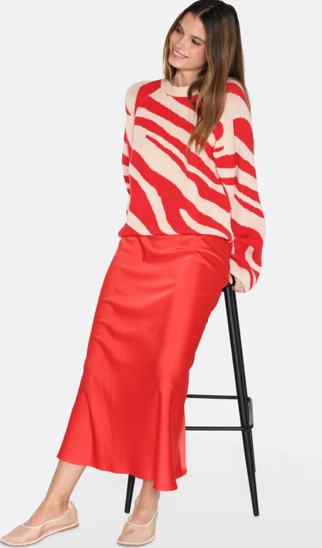 Gebry on maksimittainen hame, joka on valmistettu satiinista ja elastaanista, koostumus tekee materiaalista hienostuneen ja joustavan. Hameessa on normaali istuvuus, ja se on suunniteltu A-linjaiseksi, mikä luo imartelevan ja luonnollisesti laskeutuvan siluetin. Materiaalikoostumus 90% polyesterisatiini-10% elastaani.