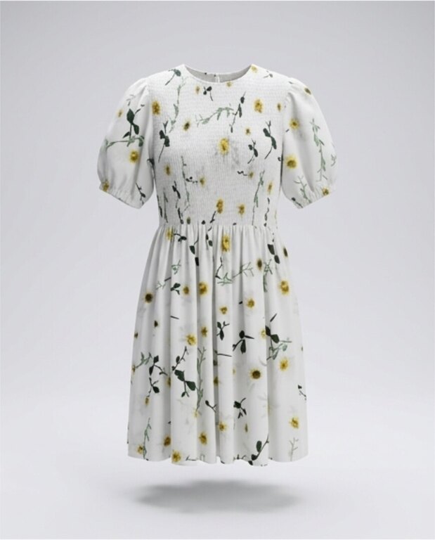 Ihana, Ivana Helsingin puhvihihainen mekko, yläosa joustavaa smokkirypytystä. Materiaali 100% puuvilla.