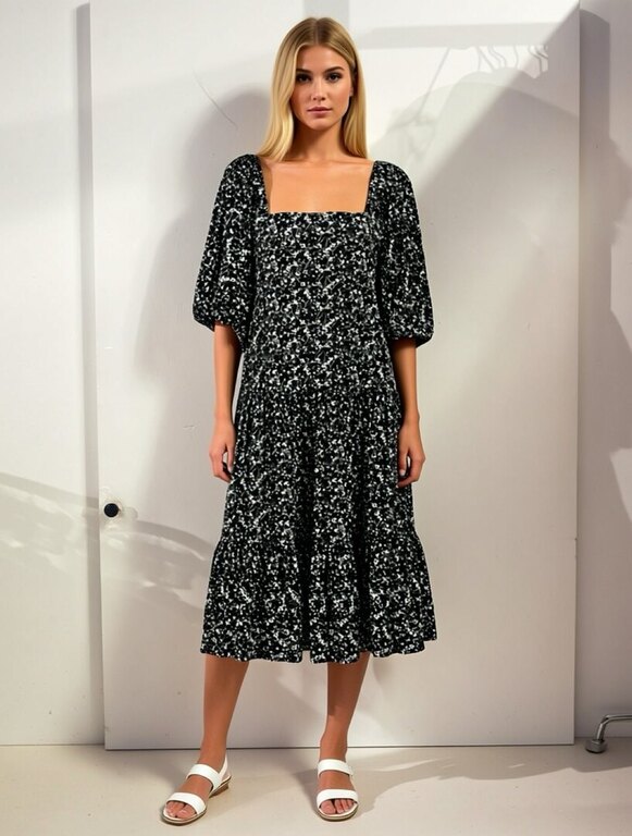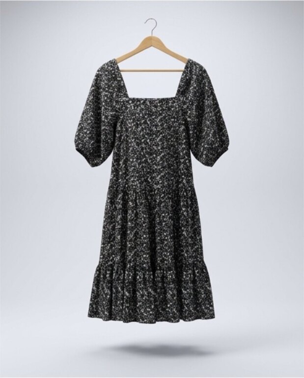 Täydellinen mekko moneen menoon. Ilmavat hihat ja neliönmuotoinen pääntie. Materiaali 100% puuvilla. Valmistaja Ivana Helsinki.
