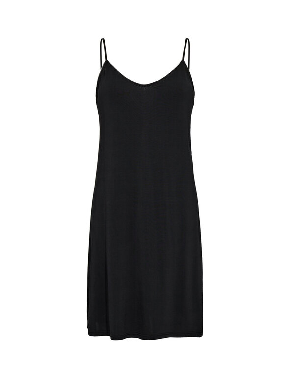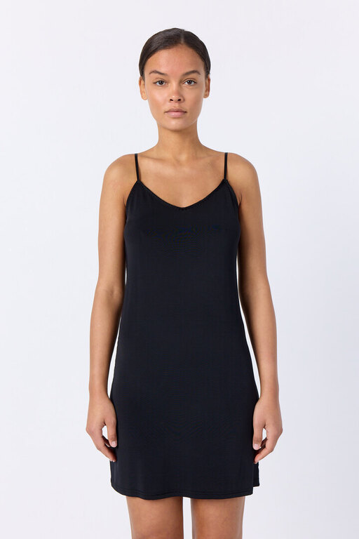 Caro on Leveten yksinkertaisen tyylikäs alusmekko, materiaali 90% viskoosi-10% elastaani. Liukas, miellyttävä materiaali, säädettävä olkain. Väri musta.