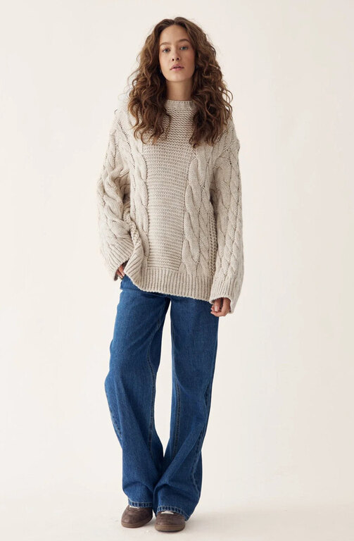 Yhdenkoon Lisbeth-neule on klassista palmikkoneulosta, oversize-mitoituksella. Ajaton valinta, joka toimii sesongista toiseen. Valmistettu Italiassa.