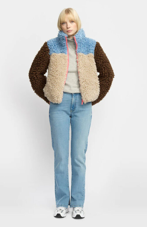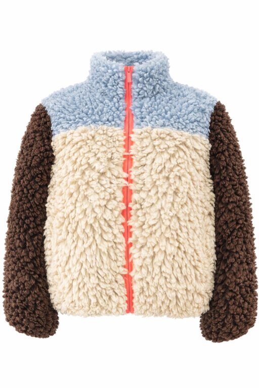 Mukava, väriblokkipintainen teddy-takki, pusakkamalli. Takki on valmistettu muhkeasta polyesteri-teddykankaasta ja siinä on rohkea kontrastivetoketju, pystykaulus, säädettävä helma sekä sivutaskut lisämukavuutta varten. Povitasku. Leikkisä väriblokkaus tuo takkiin luonnetta, ja kokonaisuutta täydentää kontrastivärinen vuori, joka on valmistettu kierrätetystä polyesteristä. Lämmin, tuulta sekä kosteutta pitävä materiaali.