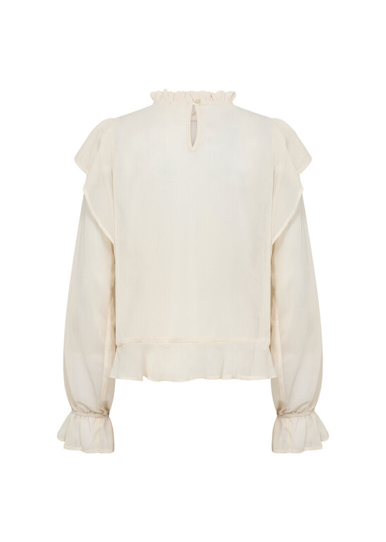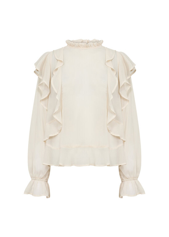 Naia-pusero on valmistettu 100 % kierrätetystä polyesterisifongista. Puserossa on röyhelöyksityiskohdat edessä ja hihansuissa, korkea pääntie sekä kauniisti laskeutuva siluetti. Yhdistä se räätälöityihin housuihin tai vaikka farkkuhameeseen, tasapainoisen tyylin luomiseksi.