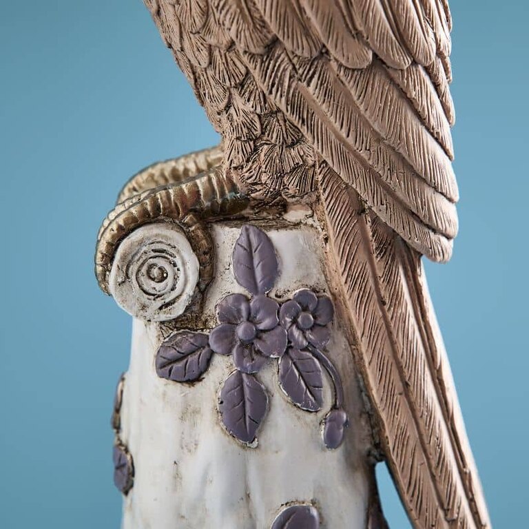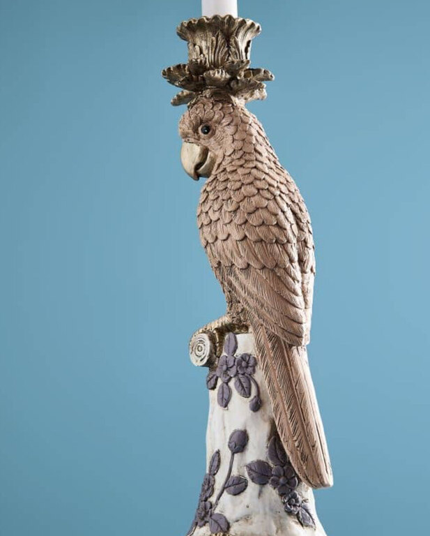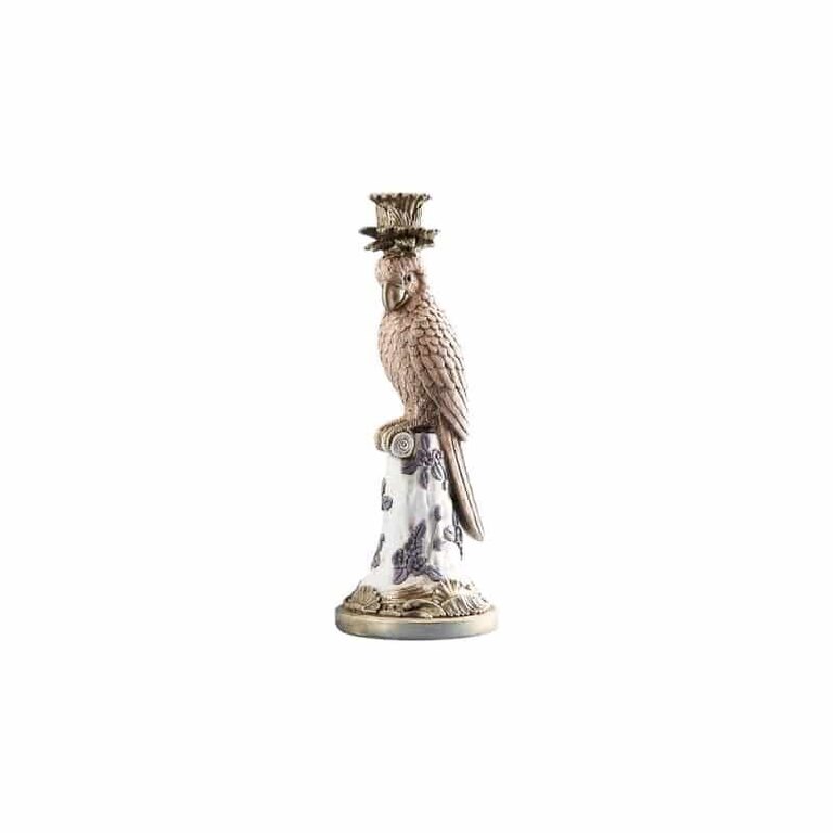 Wernsin upea Nio-papukaija kynttilänjalka. Vintage-henkinen, materiaali polyresiini. Sisäkäyttöön.