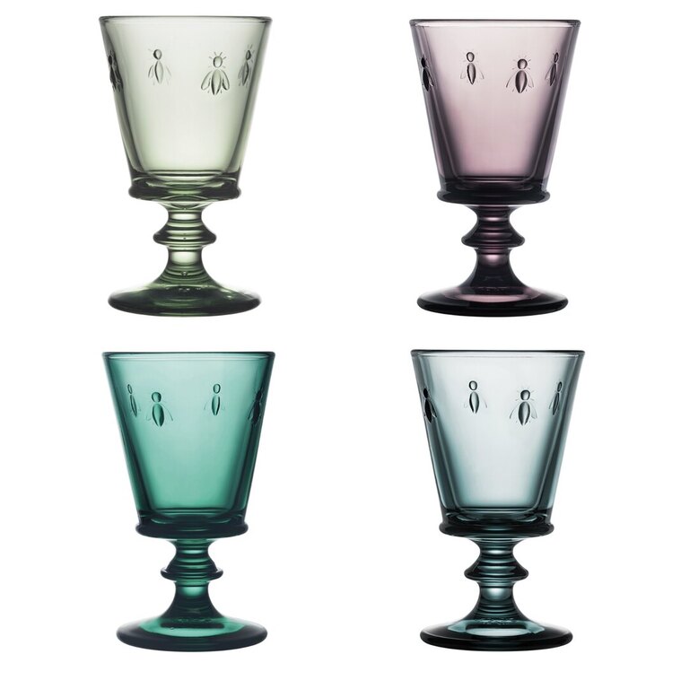 Ranskalaisen La Rochèren monivärinen Abeille-viinilasien 4 kappaleen lahjasetti. Sopivat punaviinille, valkoviinille ja roséviinille sekä mehulle, vedelle ja cocktaileille.