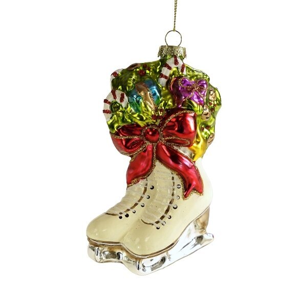 Werner Vossin luistimet-joulukoriste. Mitat 8x14x13 cm, materiaali lasi.