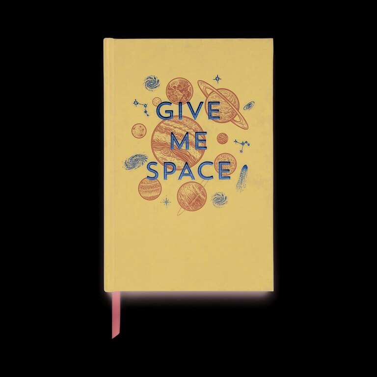 Designworks Inkin “Give Me Space” -muistikirjan avulla muistiinpanojen, tavoitteiden ja listojen pitäminen on sekä hauskaa että tyylikästä! Kovakantinen muistikirja on koristeltu näyttävällä kultafolioidulla tekstillä ja klassisella, vintage-henkisellä kuvitustyylillä.
