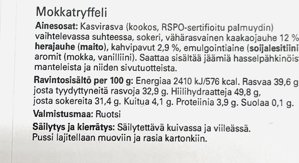 Ruotsalaisen Fran & Co:n suussasulavat, kaakaojauheessa dipatut suklaatryffelit. Makuna Mokka.