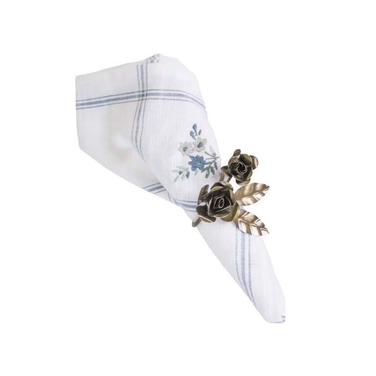Strömshagan teräksinen lautasliinarengas, ruusuaiheella. Sävy antiikkipronssi. Halkaisija 5 cm.