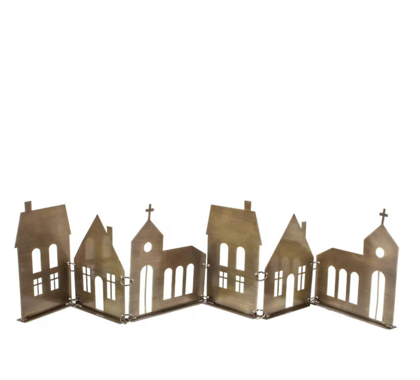 Luo taianomainen ja kutsuva tunnelma talven ja joulun aikaan tällä kauniilla sisustusesineellä. Viehättävän kaupunkisiluetin muotoinen koriste luo lämpöä ja iloa kotiin. Aseta tuikkukynttilät siluetin taakse; valo hehkuu ikkunoiden ja ovien läpi, lisäten kodikkuutta ja juhlan tuntua. Pituus 60 cm.