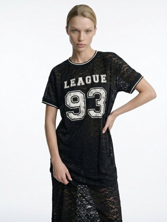 Kaffen hauskan sporttinen, väljälinjainen, läpikuultava pitsimekko. Käytä alusmekon kanssa tai vaikka topin j farkkujen päällä. Huom. mekossa ei ole mukana alusmekkoa. Materiaali 90% polyamidi, 10% elastaani.