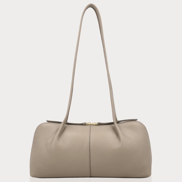 ELO Soft Sepia Gold, tyylikäs taupen sävyinen baguette-laukku LouLou Essentielsiltä.