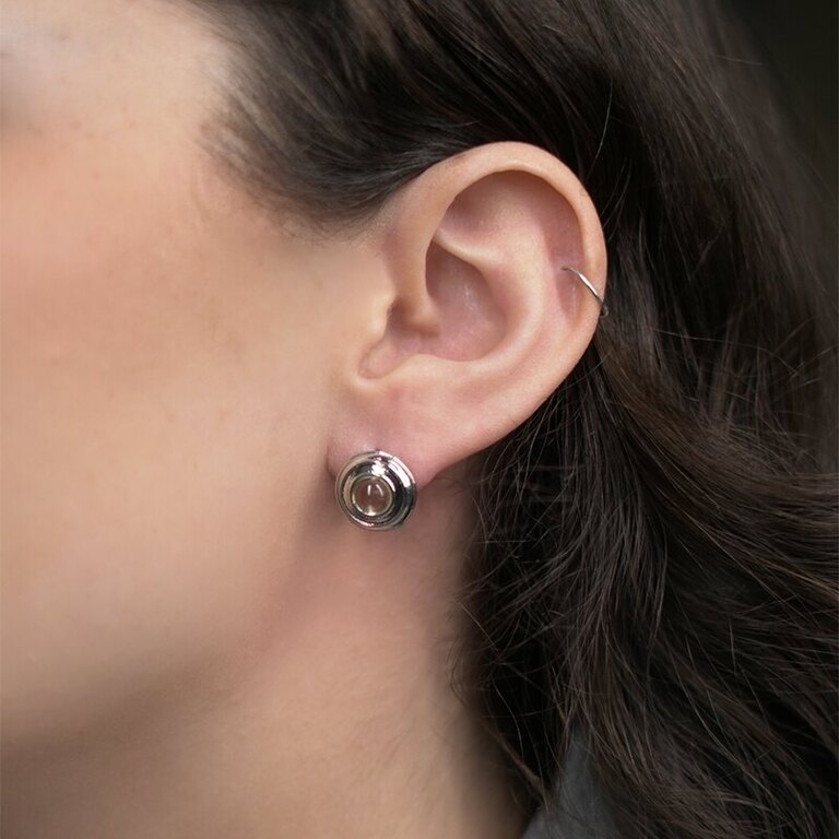 Fibi-korvakorut ovat edestä pyöreät, ja niiden “renkaat” heijastavat kauniisti valoa. Sivusta katsottuna muoto on kevyesti kupera, jolloin korvakorut asettuvat kauniisti korvalehdelle eivätkä kallistu eteenpäin. Keskellä on 6 mm:n lasikivi. Kiinnitys on sijoitettu yläreunaan, ja lukko napsautetaan kiinni ylöspäin. Koko korvakorun halkaisija on 13 mm; riittävän pieni, jotta viereen voi yhdistää halutessaan toisen pienen renkaan tai napin.