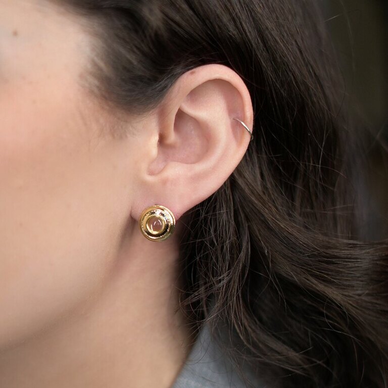 Fibi-korvakorut ovat edestä pyöreät, ja niiden “renkaat” heijastavat kauniisti valoa. Sivusta katsottuna muoto on kevyesti kupera, jolloin korvakorut asettuvat kauniisti korvalehdelle eivätkä kallistu eteenpäin. Keskellä on 6 mm:n lasikivi. Kiinnitys on sijoitettu yläreunaan, ja lukko napsautetaan kiinni ylöspäin. Koko korvakorun halkaisija on 13 mm; riittävän pieni, jotta viereen voi yhdistää halutessaan toisen pienen renkaan tai napin.