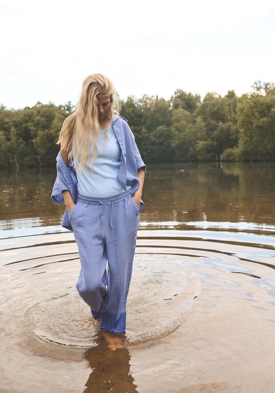 Agendan Janella-pellavahousut ovat malliltaan leveälinjaiset. Joustava vyötärö, taskut. Materiaali 100% pellava.