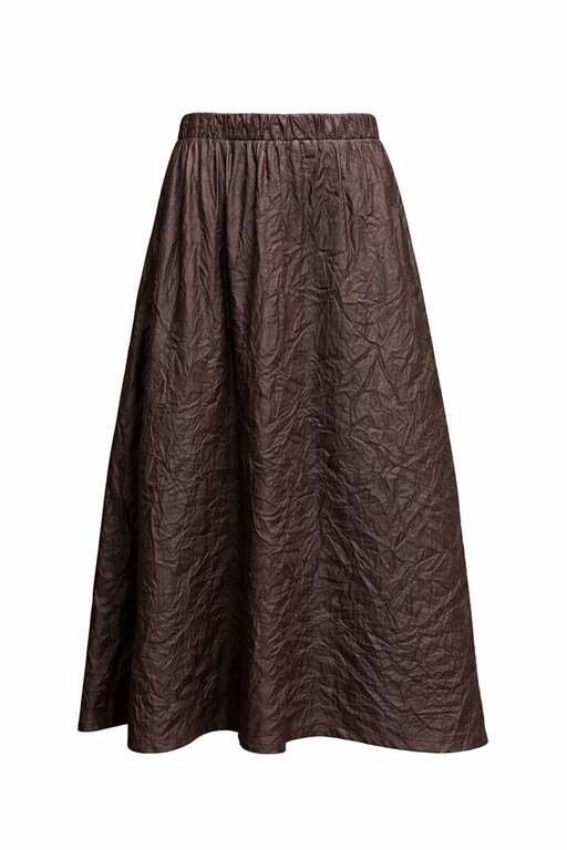 MariMarin Crush Skirt on leveähelmainen, a-linjainen hame, jossa on joustava vyötärö. Taskut sivusaumoissa, pituus midi. Materiaali kevyt ja pehmeä, crushed-pintainen keinonahka (50% polyuretaani-50% polyamidi). Valmistettu Suomessa, Lahdessa. Kolme kokoa, S, M, L, joista S toimii skaalassa 36-38, M 38-42, L 44-48. Katso myös mitat alta!