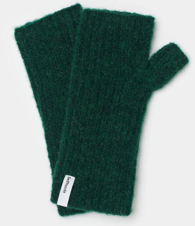 Selfhoodin ihanat, pörröiset, kudotut kynsikkäät . Materiaali 48% kierrätyspolyesteri, 30% Polyesteri, 13% akryyli, 6 % villa, 3% Spandex.