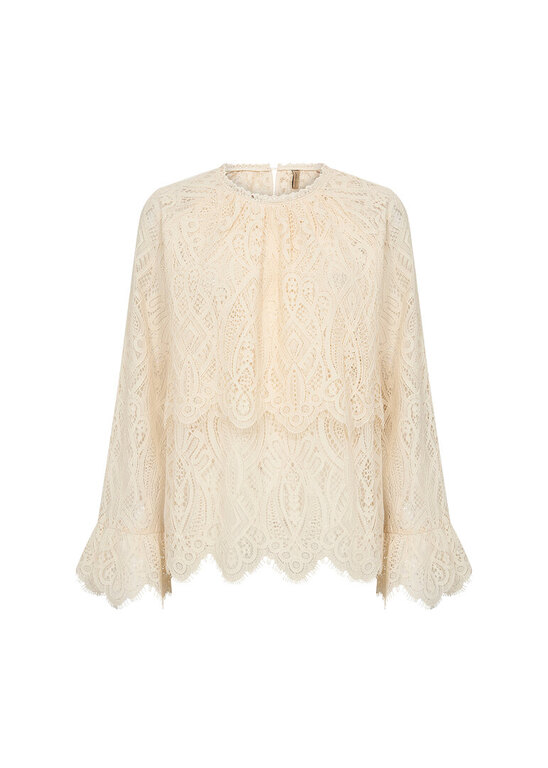 VAHIDA pitsipusero on valmistettu 60 % puuvillasta ja 40 % polyamidista. Puserossa on pyöreä pääntie, herkkä pitsikuviointi ja aaltoreunaiset helmat. Yhdistä se räätälöityihin housuihin tai kynähameeseen saadaksesi hienostuneen ilmeen.