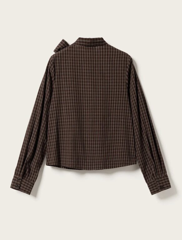 Kesha on Noellan kaunis paitis, jossa on ruskeasävyinen ruutukuosi ja nauhakaulus. Olkalinjassa napit. Täyspitkä hiha ja nappikalvosimet. Materiaali 100 % puuvilla.