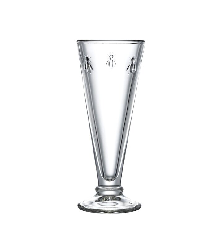 Shampanjalasit Abeille, 6 kpl. Valmistaja ranskalainen La Rochère, koristeltu Napoleonin mehiläisaiheella. Täydellinen shamppanjalle, kuohuviinille ja cocktaileille, kuten bellinille ja mimosalle. Tilavuus 15 cl.
