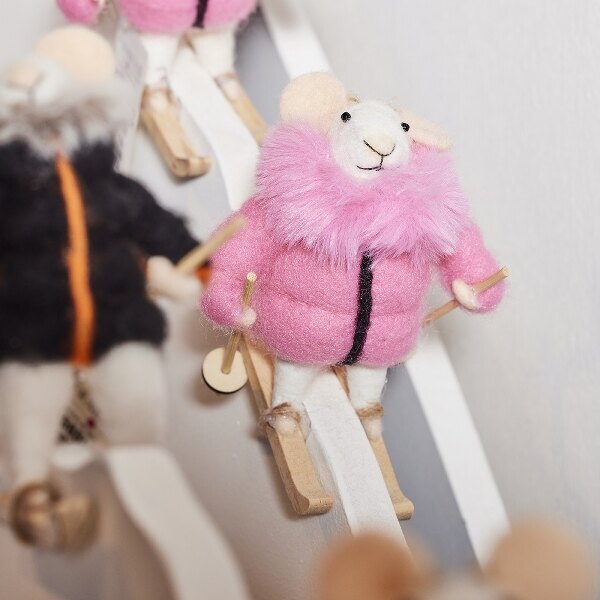 Tämä Werner Vossin lasketteleva Hiiri valloittaa sydämen aivan heti. Hiiren materiaali villa, asussa villaa ja polyesteria. Mitat 9,5x10x12 cm.