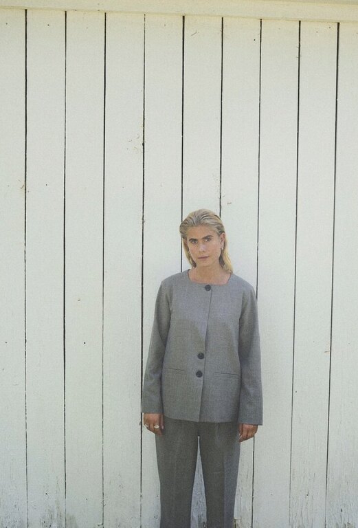 Humblen tyylikäs, vuoritettu jakku, jossa on neliskanttinen pääntie ja napitus. Saatavilla myös yhteensopivat housut (Naomi pants).
