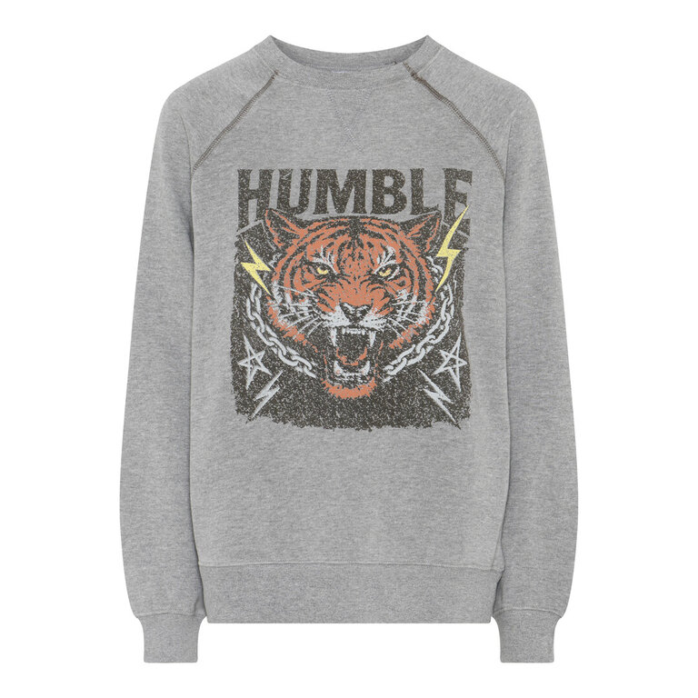 Humblen harmaa,meleerattu collari, tiikeriprintillä. Materiaali 85% puuvilla-15% polyesteri. Ylijäämäkangasta vaateteollisuudesta.