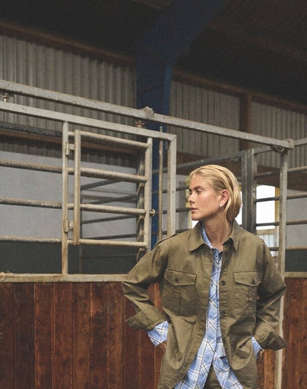Humblen Noella Jacket on reipas ja ryhdikäs paitistakki, jossa on napitus edessä. Taskut.  Takana Humble-brodeeraus. Materiaali 100% puuvilla, kuosissa kalanruotokuvio. Suunniteltu Tanskassa, valmistettu eettisesti Intiassa.