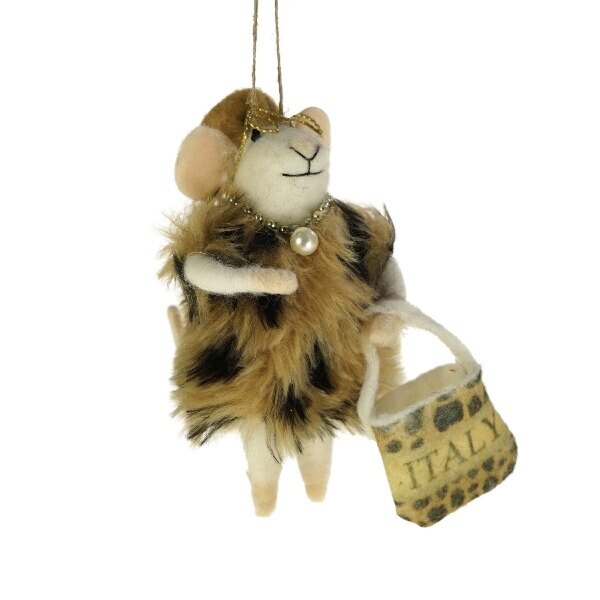 Tämä Werner Vossin Fashionista Hiiri valloittaa sydämen aivan heti. Hiiren materiaali villa, asussa myös polyesteria. Mitat 7x8x12 cm.