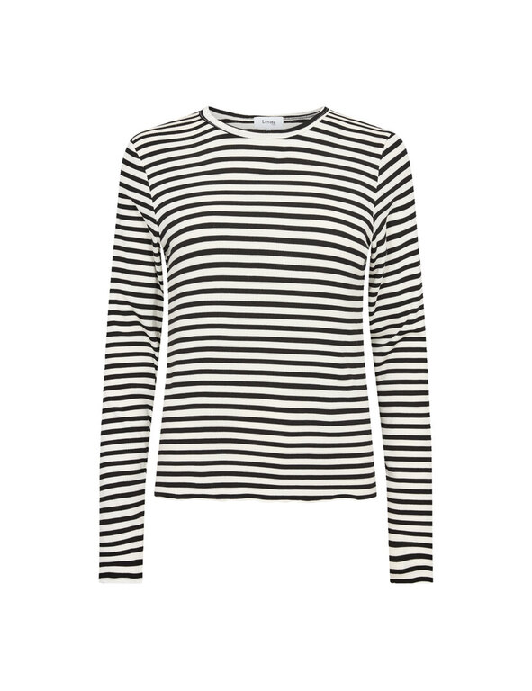 Ajaton raitakuosi, pyöreä pääntie ja pitkät hihat. Capsule wardrobe-vaate, johon palaa aina uudelleen.