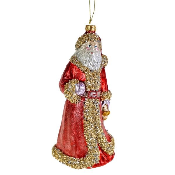 Werner Vossin vintagehenkinen joulupukki-koriste, jonka voi ripustaa tai laittaa pöydälle. Materiaali lasi, mitat 9x9x19,5 cm.