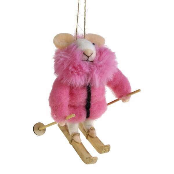 Tämä Werner Vossin lasketteleva Hiiri valloittaa sydämen aivan heti. Hiiren materiaali villa, asussa villaa ja polyesteria. Mitat 9,5x10x12 cm.