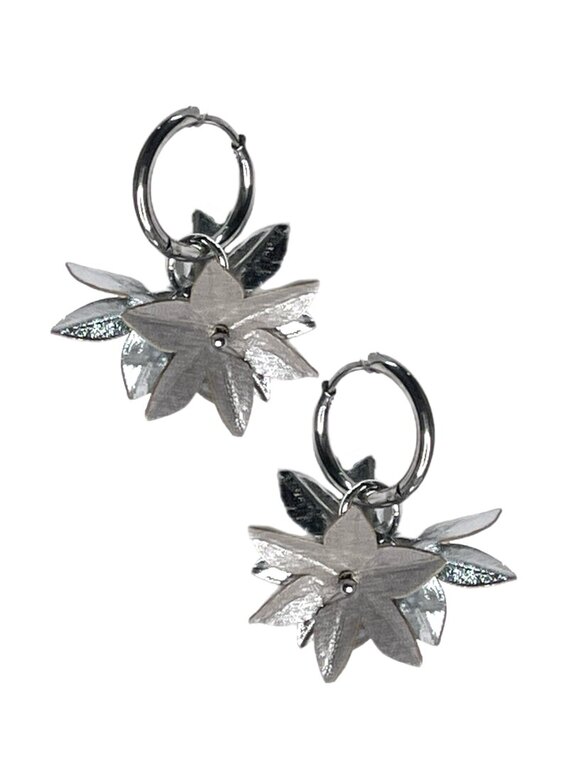 Havinan Marja-Liisa -korvakoruissa sydämen valloittavat pienet, runsaat kukat, jotka on kiinnitetty teräsrenkaaseen. Kukan materiaali paperinahka. Korun korkeus ja leveys noin 4 cm. Valmistettu Suomessa.