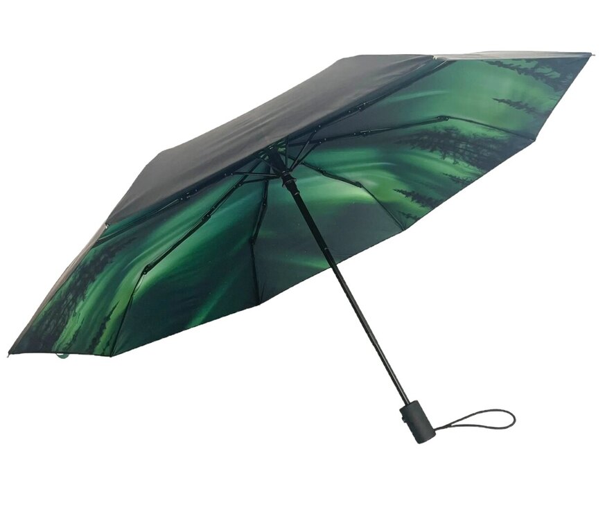 Tuo revontulten kauneus osaksi arkeasi Norrsken-sateenvarjolla. Tämä alkuperäiskokoinen sateenvarjo yhdistää lumoavan revontulikuvioinnin kestävään toiminnallisuuteen, tarjoten sekä eleganssia että suojaa kaikissa sääolosuhteissa.