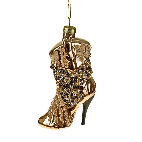 Aivan mahtava korkokenkäsaapikas-koriste Werner Vossilta. Materiaali lasi, mitat 4x12 cm.