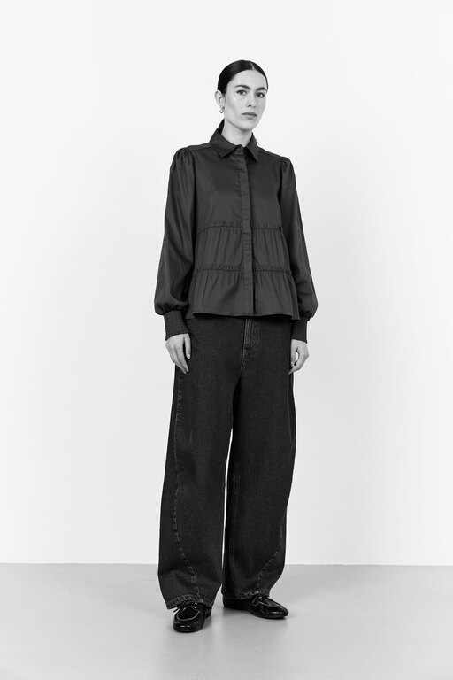 ISLA SOLID on naisellinen paita, joka on valmistettu 65 % luomupuuvillasta, 30 % polyamidista ja 5 % elastaanista. Paidassa on klassinen kaulus, etupuolen nappikiinnitys, pitkät hihat ja uniikit rypytysyksityiskohdat, jotka tuovat ilmeeseen tekstuuria. Yhdistä se esimerkiksi räätälöityihin housuihin tai hameeseen viimeistellyn tyylin luomiseksi.