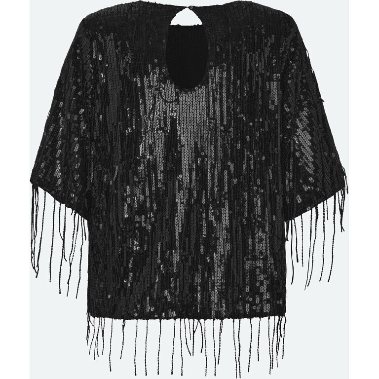 Mandi on Movesin upea paljettipusero. Boksimallinen, puolipitkä hiha, pääntiellä takana nappihalkio. Olkatoppaukset. Vuori pehmeää ja miellyttävää trikoota. Yhdistä saman valmistajan Lubinu-hameeseeno, saat upean kokonaisuuden. Materiaali polyesteri, vuori 70% polyesteri-30 % viskoosi.