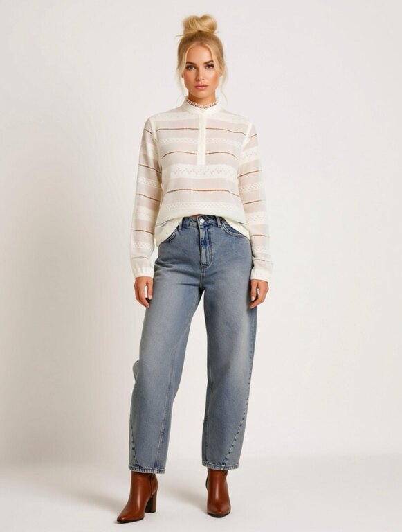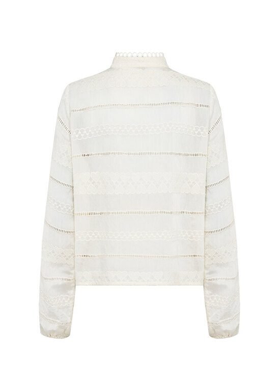 Tässä elegantissa puserossa on hienostuneet pitsiyksityiskohdat, pystykaulus ja mukavat pitkät hihat. Yhdistä siisteihin housuihin luodaksesi viimeistellyn ilmeen tai farkkuihin rennomman tyylin saavuttamiseksi. Pusero on valmistettu 75 % viskoosista ja 25 % polyesterista.